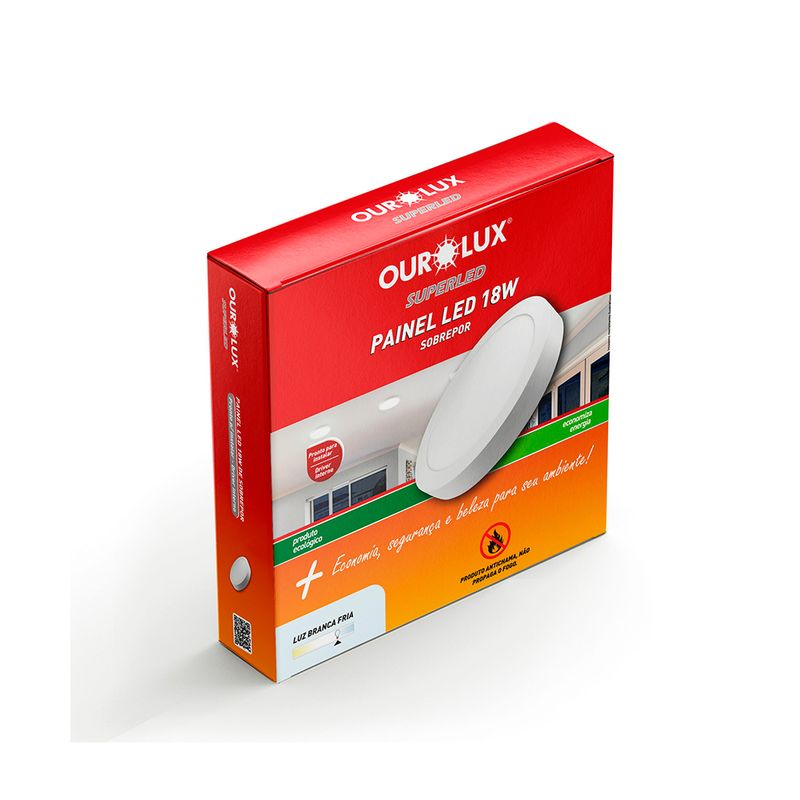 Painel Led Redondo de Sobrepor 18w Luz Amarela 2700K Ourolux
