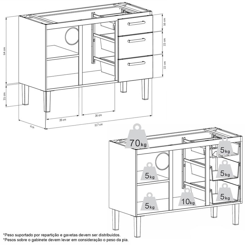 Gabinete de Cozinha em Aço 1,20 Metros Atena Branco - Cozimax