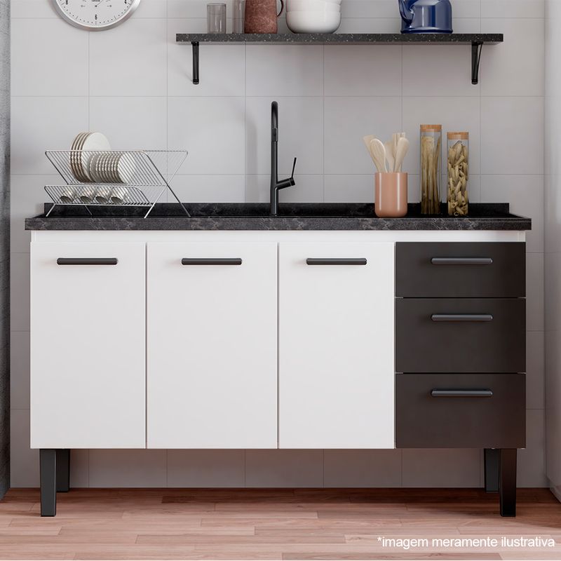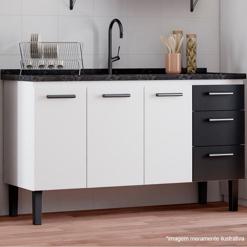 MóveisGabinetesCozinhaGabinete de Cozinha em Aço 1,50 Metros Atena Preto - Cozimax