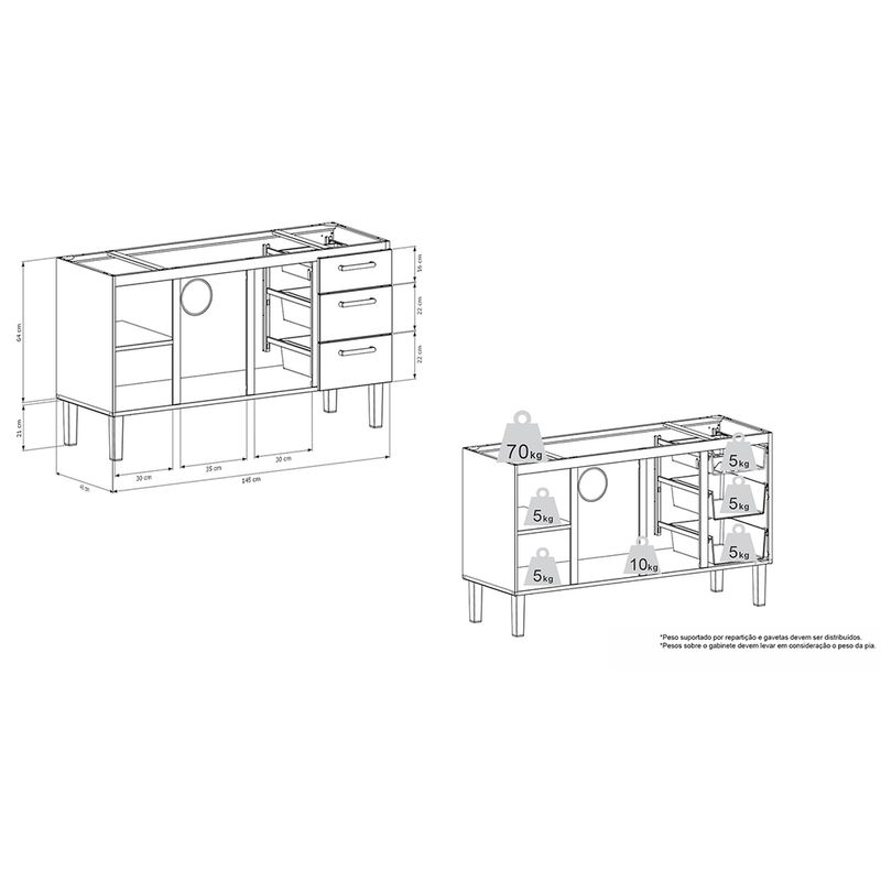 Gabinete de Cozinha em Aço 1,50 Metros Atena Preto - Cozimax