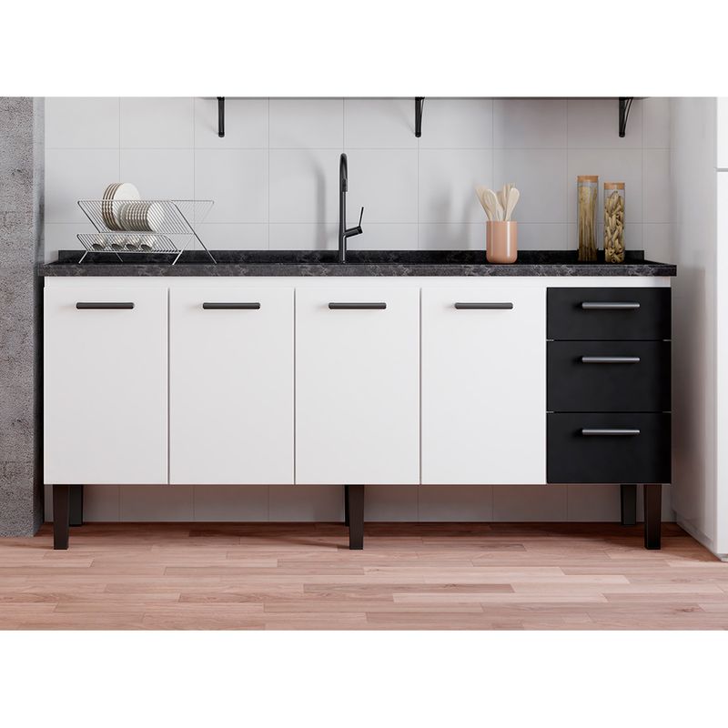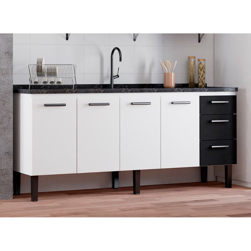 MóveisGabinetesCozinhaGabinete de Cozinha em Aço 2,00 Metros Atena Preto - Cozimax